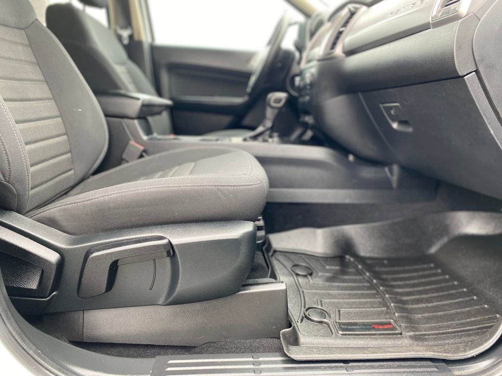 Oxford White 2022 Ford Ranger XLT 4WD 10-Speed Automatic EcoBoost 2.3L I4 GTDi DOHC Turbocharged VCT Ranger XLT, 4D Crew Cab, EcoBoost 2.3L I4 GTDi DOHC Turbocharged VCT, 10-Speed Automatic, 4WD, Oxford White, Ebony Cloth, 110V AC Power Outlet, 4-Wheel Disc Brakes, 6 Speakers, ABS brakes, Air Conditioning, Alloy wheels, AM/FM radio: SiriusXM, AM/FM Stereo, Auto High-beam Headlights, Auto Start-Stop Technology, Automatic temperature control, Brake assist, Bumpers: body-color, Class IV Trailer Hitch Receiver, Compass, Delay-off headlights, Driver door bin, Driver vanity mirror, Dual front impact airbags, Dual front side impact airbags, Electronic Stability Control, Emergency communication system: SYNC 3 911 Assist, Equipment Group 300A Standard, Exterior Parking Camera Rear, Front anti-roll bar, Front Bucket Seats, Front Center Armrest, Front dual zone A/C, Front fog lights, Front License Plate Bracket, Front Premium Cloth Bucket Seats, Front reading lights, Front wheel independent suspension, Fully automatic headlights, Illuminated entry, Low tire pressure warning, Occupant sensing airbag, Outside temperature display, Overhead airbag, Overhead console, Panic alarm, Passenger door bin, Passenger vanity mirror, Power door mirrors, Power steering, Power windows, Rear reading lights, Rear seat center armrest, Rear step bumper, Rear window defroster, Remote keyless entry, Reverse Sensing System, Security system, SiriusXM Satellite Radio, Speed control, Speed-sensing steering, Steering wheel mounted audio controls, SYNC 3, SYNC 3/Apple CarPlay/Android Auto, Telescoping steering wheel, Tilt steering wheel, Tough Bed Spray-In Bedliner, Traction control, Trailer Tow Package, Trip computer, Variably intermittent wipers, Voltmeter, Wheels: 17 Silver-Painted Aluminum.