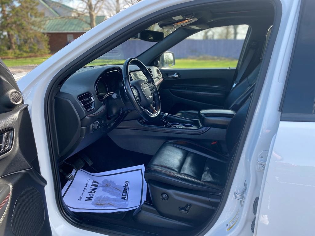 White Knuckle Clearcoat 2024 Dodge Durango GT Plus RWD 8-Speed Automatic 3.6L V6 24V VVT Durango GT Plus, 4D Sport Utility, 3.6L V6 24V VVT, 8-Speed Automatic, RWD, White Knuckle Clearcoat, Black Leather, 1-Year Trial (Registration Required), 10.1 Touchscreen Display, 115V Auxiliary Power Outlet, 180 Amp Alternator, 3.27 Rear Axle Ratio, 3rd row seats: split-bench, 4-Wheel Disc Brakes, 4G LTE Wi-Fi Hot Spot, 6 Speakers, 7 & 4 Pin Wiring Harness, ABS brakes, Adaptive Cruise Control w/Stop, Air Conditioning, Alloy wheels, AM/FM radio: SiriusXM, Apple CarPlay, Apple CarPlay/Android Auto, Auto-Dimming Exterior Driver Mirror, Auto-dimming Rear-View mirror, Auto-leveling suspension, Automatic temperature control, Black Roof Rails, Blind Spot w/Trailer Detection, Brake assist, Bumpers: body-color, Class IV Receiver Hitch, Cloth Bucket Seats w/Shift Insert, Compass, Connected Travel & Traffic Services, Delay-off headlights, Disassociated Touchscreen Display, Driver door bin, Driver vanity mirror, Dual front impact airbags, Dual front side impact airbags, Dual Remote USB Port - Charge Only, Electronic Stability Control, Exterior Mirrors w/Heating Element, Exterior Mirrors w/Memory, Exterior Mirrors w/Supplemental Signals, Floor Console w/Leather Armrest, For Details, Visit DriveUconnect.com, Four wheel independent suspension, Front anti-roll bar, Front Bucket Seats, Front Center Armrest w/Storage, Front dual zone A/C, Front License Plate Bracket, Front reading lights, Full Speed Forward Collision Warning Plus, Fully automatic headlights, Garage door transmitter, Global Telematics Box Module (TBM), Gloss Black Exterior Mirrors, Google Android Auto, GPS Antenna Input, GPS Navigation, HD Radio, Heated door mirrors, Heated front seats, Heated Second Row Seats, Heated steering wheel, Heavy-Duty Engine Cooling, Illuminated entry, Integrated Center Stack Radio, Integrated Roof Rail Crossbars, Integrated Voice Command w/Bluetooth®, Knee airbag, Leather steering wheel, Leather Trimmed Bucket Seats, Leather Wrapped Door Panels, LED Auxiliary Low Beam & Turn Signal, Low tire pressure warning, Occupant sensing airbag, Outside temperature display, Overhead airbag, Overhead console, Panic alarm, ParkView Rear Back-Up Camera, Passenger door bin, Passenger vanity mirror, Power 6x9 Multi-Function Foldaway Mirrors, Power 8-Way Driver Memory 8-Way Passenger Seats, Power door mirrors, Power driver seat, Power Driver/Passenger 4-Way Lumbar Adjust, Power Liftgate, Power steering, Power Sunroof, Power Tilt & Telescopic Steering Column, Power windows, Quick Order Package 2BG GT Plus, Radio data system, Radio: Uconnect 4 w/8.4 Display, Radio: Uconnect 5 Nav w/10.1 Display, Radio/Driver Seat/Mirrors Memory, Rear air conditioning, Rear anti-roll bar, Rear Load Leveling Suspension, Rear reading lights, Rear seat center armrest, Rear window defroster, Rear window wiper, Red Accent Stitching, Remote keyless entry, SiriusXM Guardian - Included Trial (B), SiriusXM w/360L, Speed control, Speed-sensing steering, Speed-Sensitive Wipers, Split folding rear seat, Spoiler, Sport steering wheel, Steering wheel mounted audio controls, Tachometer, Telescoping steering wheel, Tilt steering wheel, Traction control, Trailer Brake Control, Trip computer, USB Host Flip, Variably intermittent wipers, Ventilated Front Seats, Voltmeter, Wheels: 20 x 8.0 Fine Silver.